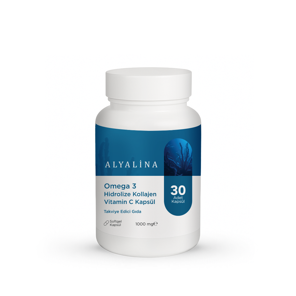 Kollajen ve C vitamini içeren omega-3 gıda takviyesi